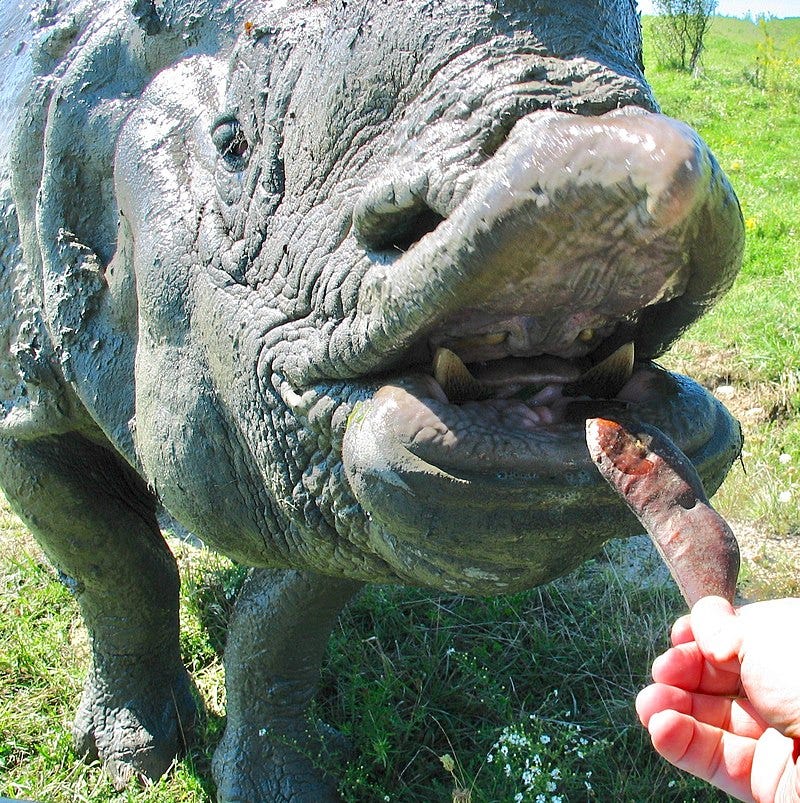 Humans in the late Pleistocene may have been one of the larger mammals of the landscape, but were among the smallest of the giants walking the continents. We were dwarfed by relatives of the rhinocerous. Outweighed by multi-ton hippo-like herbivores. Hunted by sabertooth cats the size of lions. Outrun by 7’ tall bison.